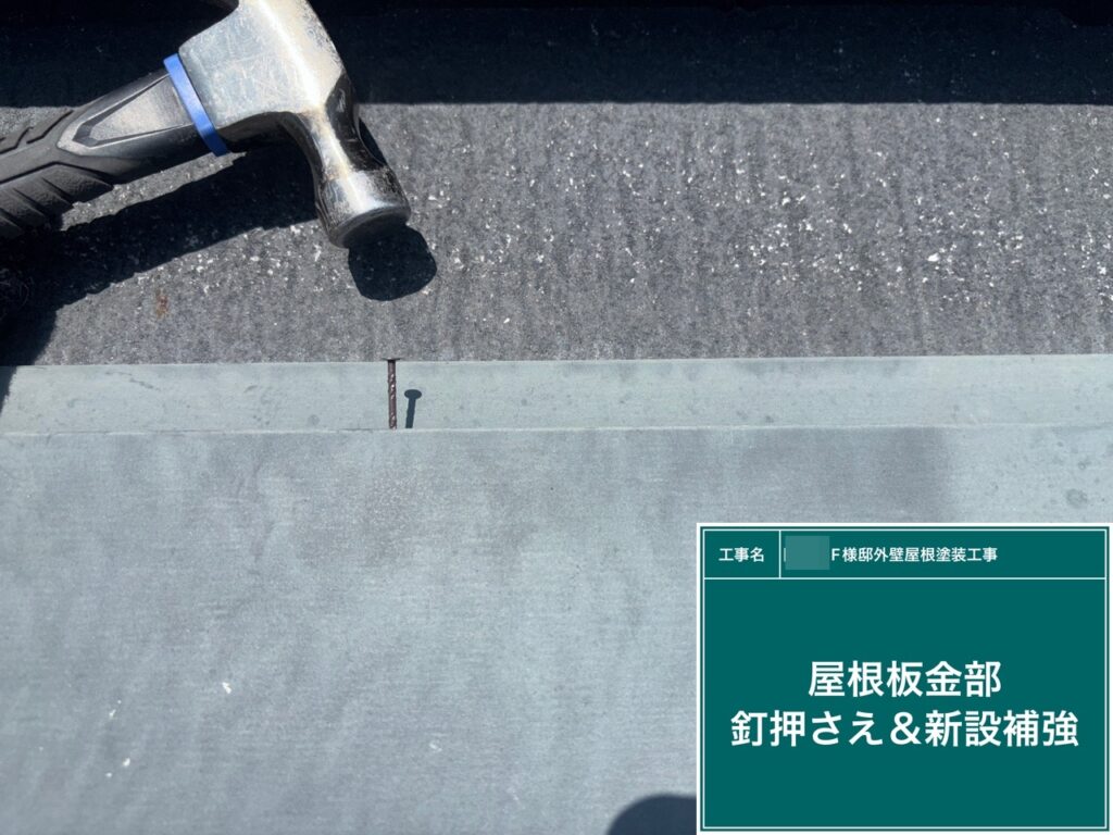 屋根ですが、表層塗膜は完全に劣化しています。反りかえりやクラックが起こる前に塗装が必要です。(反り返りが起こると強風により割れてりまったり、冬場に基材自体に水分を含みやすくなり凍結するとヒビ割れが起きます)。縁切り作業(タスペーサー設置)し、3回塗り致します。