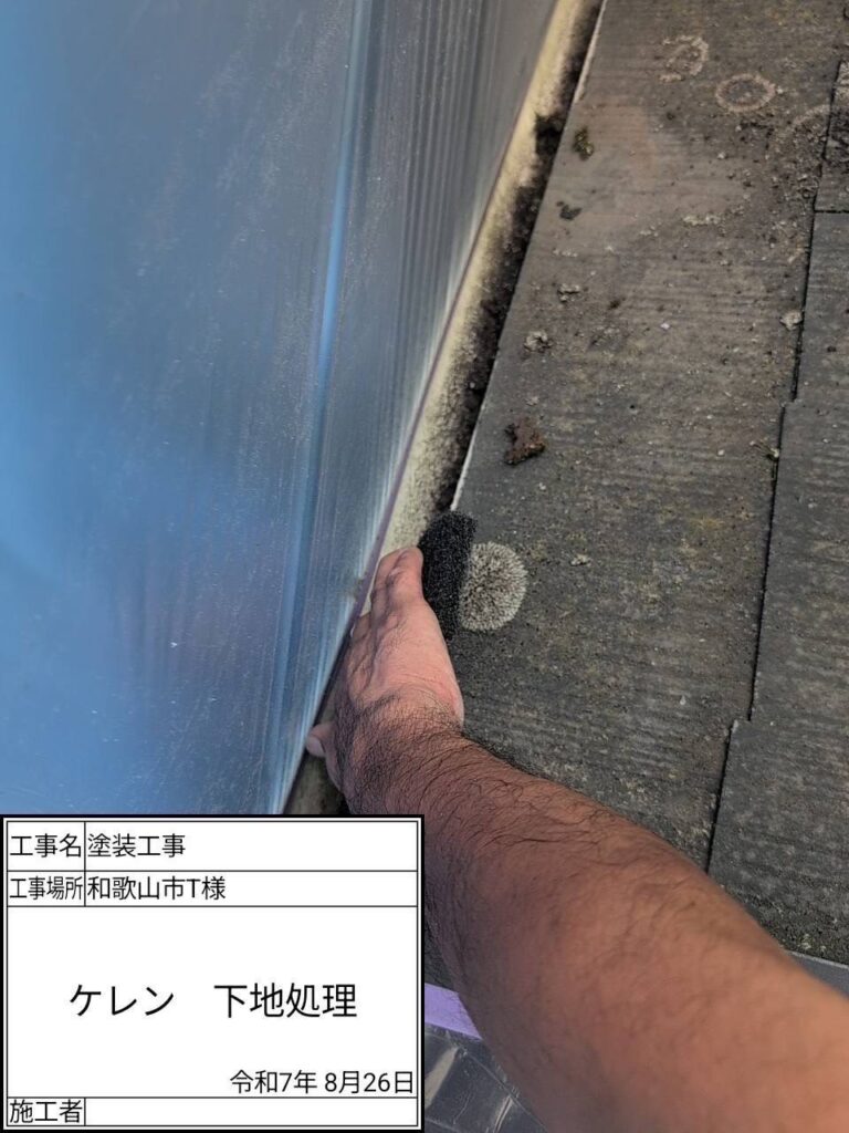 劣化している付帯部をペーパーなどを使い素地調整していきます。