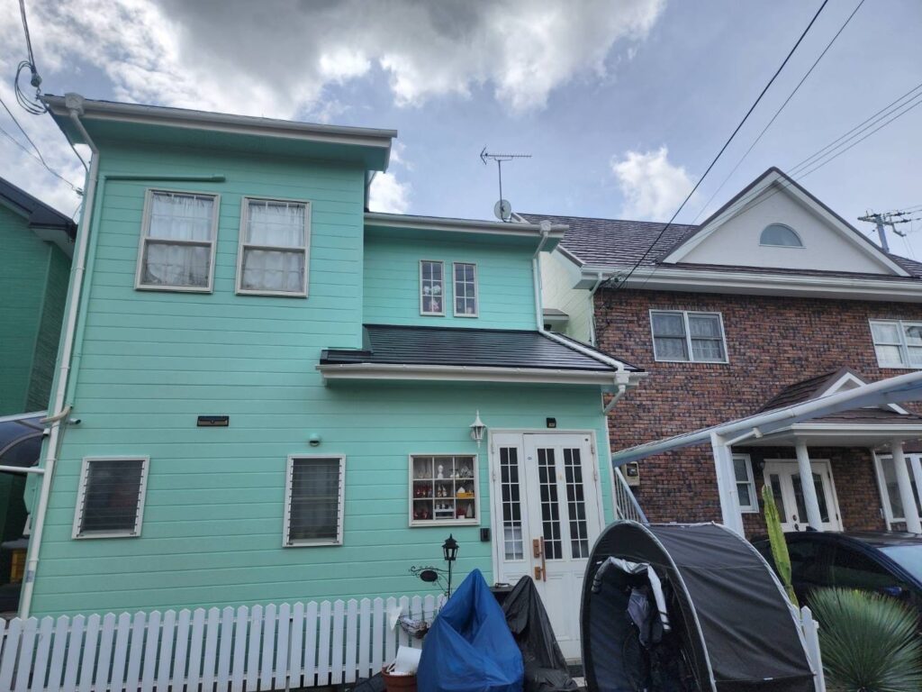 | 使用商材・建材 | 外壁:無機エクスカリバーAZ-W(2液型水性/超耐&超低汚染無機塗料/KFケミカル) 屋根:無機エクスカリバーMZ-R(2液型弱溶剤/超耐&超低汚染無機塗料/KFケミカル) 付帯 : 4Fイージスガード(2液型弱溶剤/フッ素塗料) 目地・開口部 : オートンイクシード(超高耐久・高耐候シーリング材/オート化学工業) |
