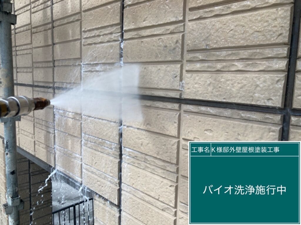 K様のお家は積水ハウスさん、築22年の初めての外壁屋根塗装工事となります。外壁ですが経年劣化に伴う色褪せが目立ちました。窯業系サイディングボードの外壁ですので洗浄(下地調整)後、下塗りを施し主材塗料にて中塗り・上塗りを行います。特にバルコニー壁や西面の壁は日当たりが良く、膨張収縮が起こり続けております。外壁の目地や開口部には、コーキングが設置されています。経年劣化により縦目地及び横目地と全体にひび割れが見受けられます。