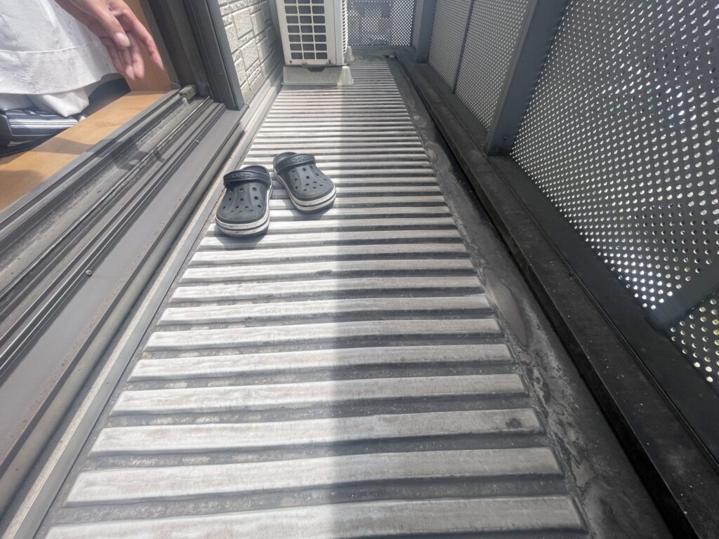 バルコニー防水ですが、銅板ユニット防水が施されております。浮き箇所や亀裂は無く良好な状態だと思われますが、築年数とすぐ下が部屋になっていますので、防水層を新しく新設していくウレタン防水密着工法にてご提案致します。※他のバルコニーは洗浄にて対応させていただきます。