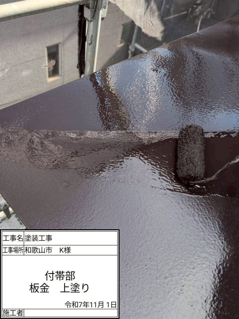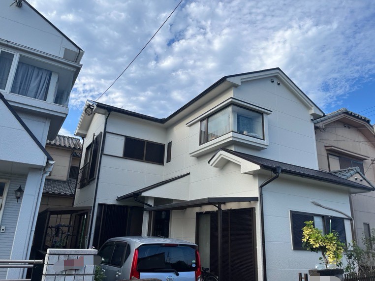 | 使用商材・建材 | 外壁:無機エクスカリバーAZ-W(2液型水性/超耐&超低汚染無機塗料/KFケミカル) 屋根:無機エクスカリバーMZ-R(2液型弱溶剤/超耐&超低汚染無機塗料/KFケミカル) 付帯 : 4Fイージスガード(2液型弱溶剤/フッ素塗料) 目地・開口部 : オートンイクシード(超高耐久・高耐候シーリング材/オート化学工業) |