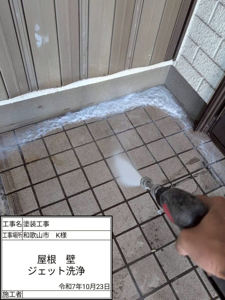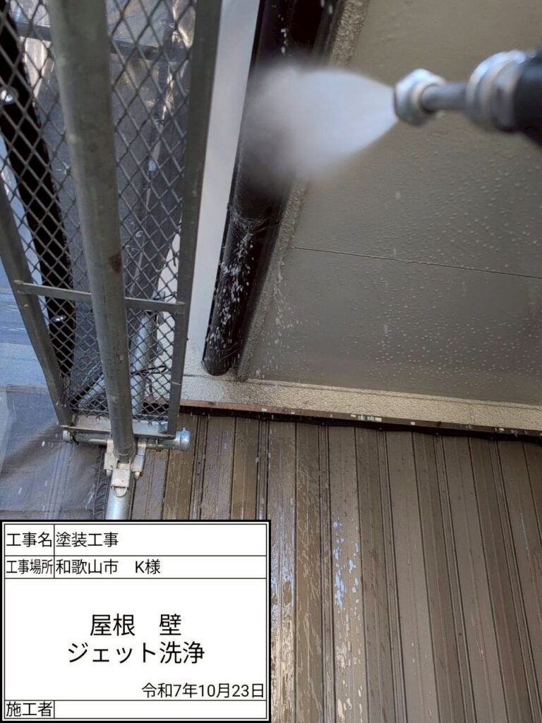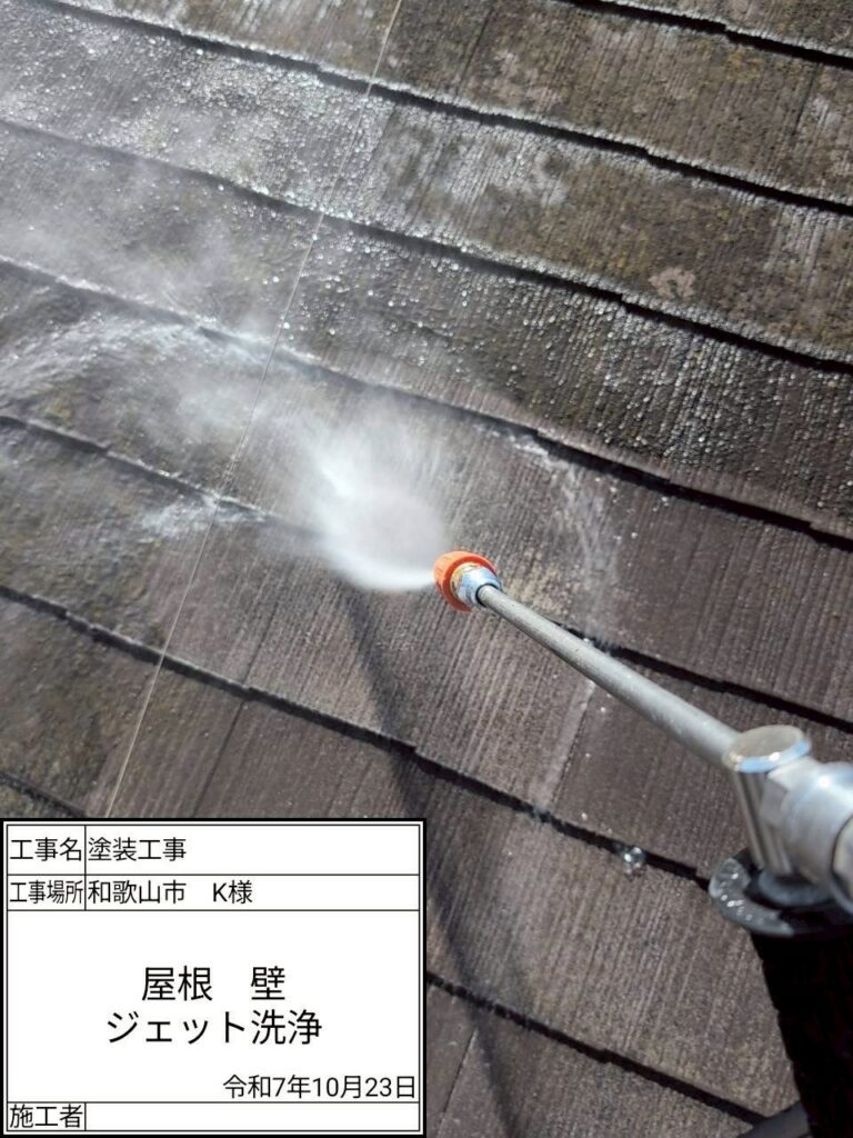高圧洗浄機を用いて、屋根・外壁・その他付帯部などを洗浄していきます。