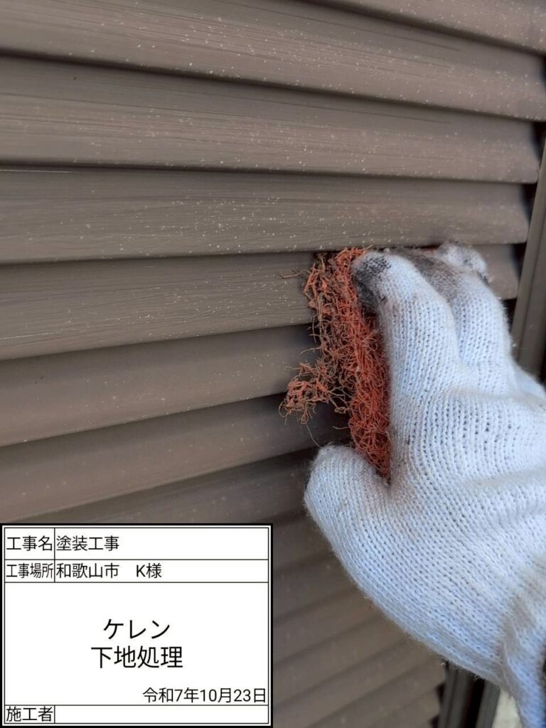 金属部分及び付帯部をペーパー等を使い素地調整していきます。