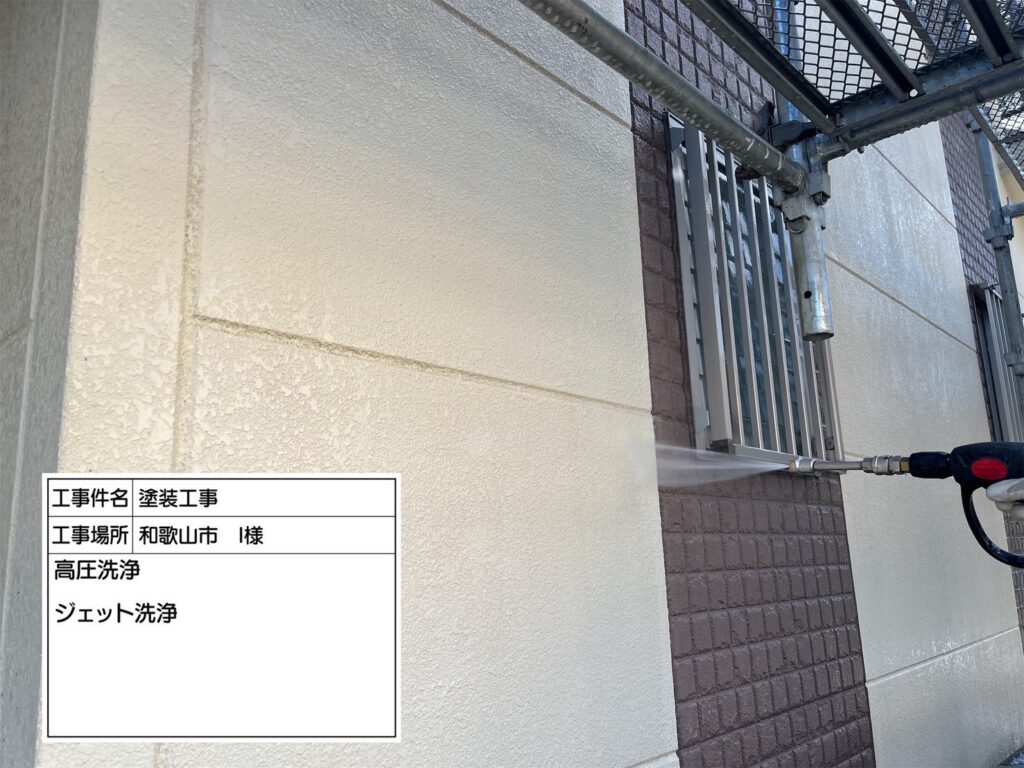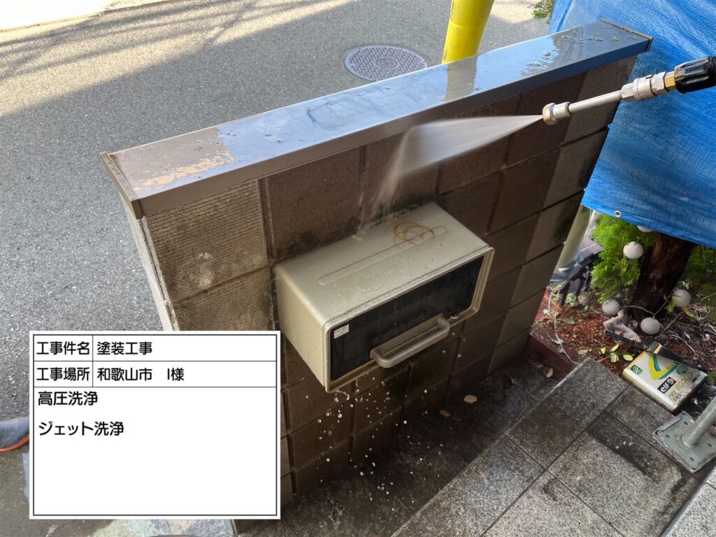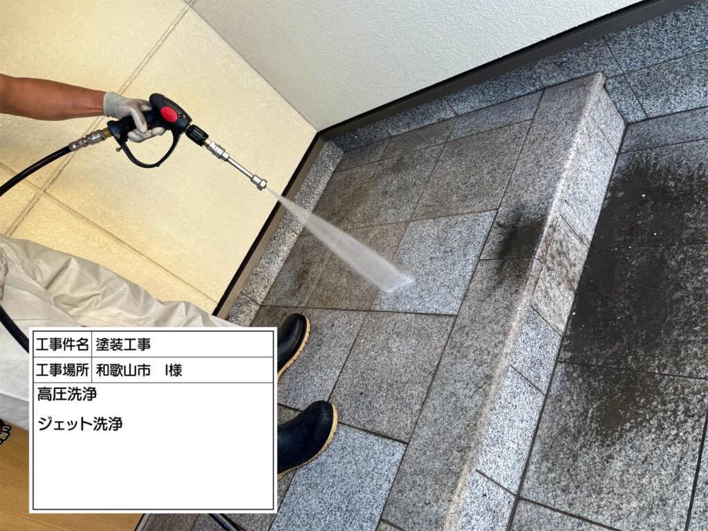 高圧洗浄機を用いて、屋根・外壁・その他付帯部などを洗浄していきます。