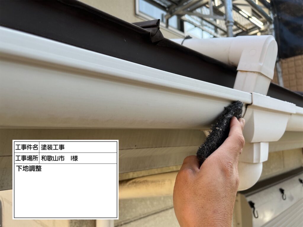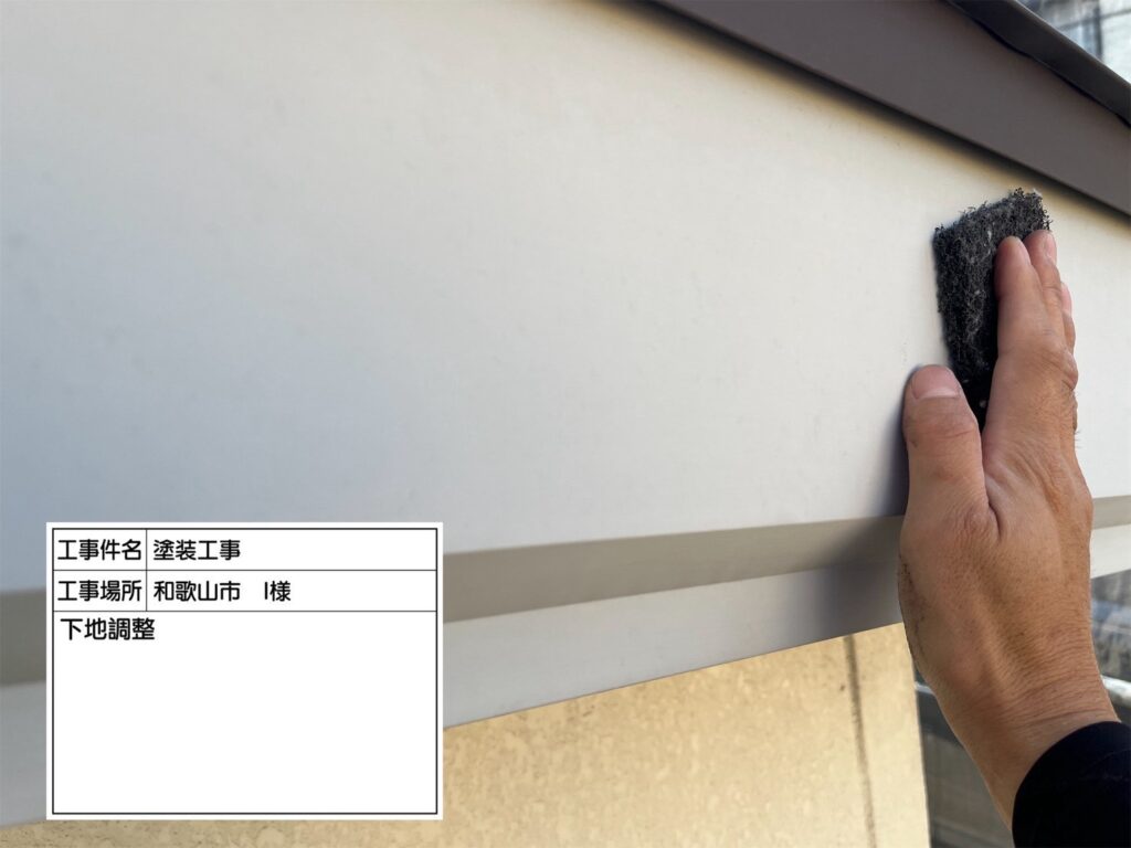 金属部や付帯部を、ペーパーなどを使って素地調整していきます。