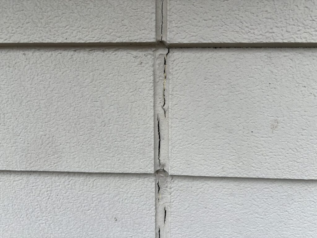 表層塗膜は劣化しています。反りかえりやクラックが起こる前に塗装しましょう(冬場、基材自体に水分を含み凍結するとヒビ割れが起きます)。縁切り作業(タスペーサー設置)し、3回塗り致します。