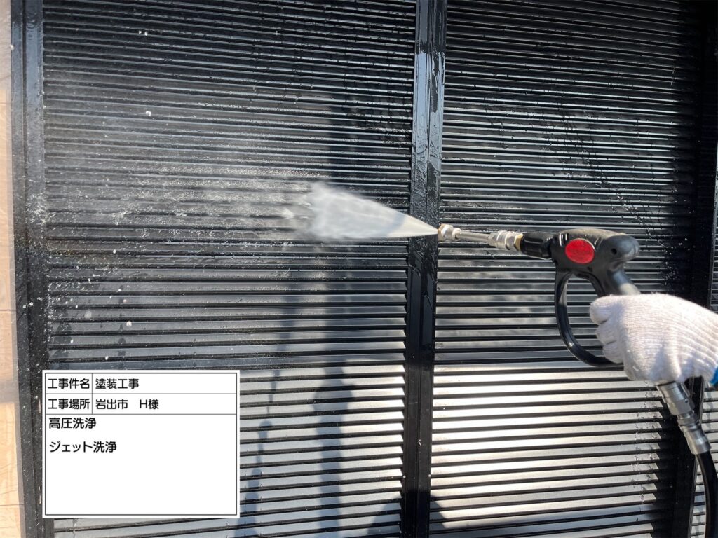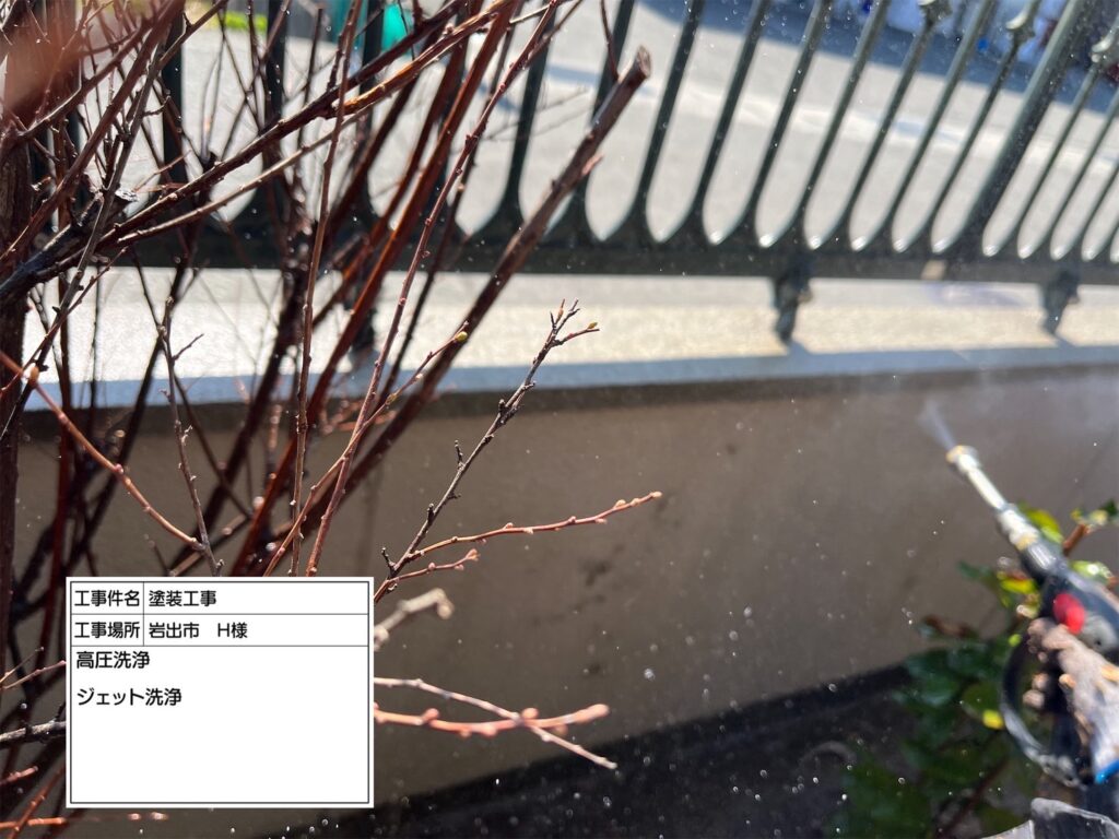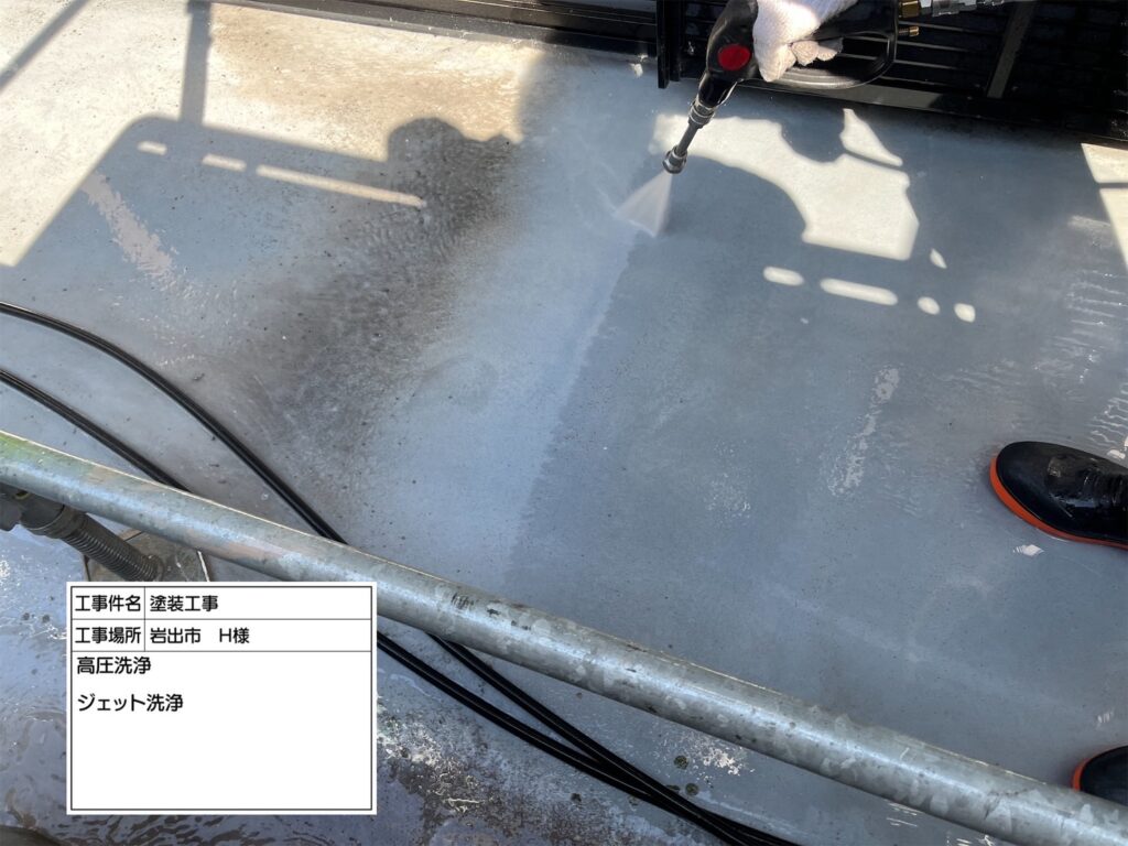 高圧洗浄機を用いて、屋根・外壁・その他付帯部などを洗浄していきます。